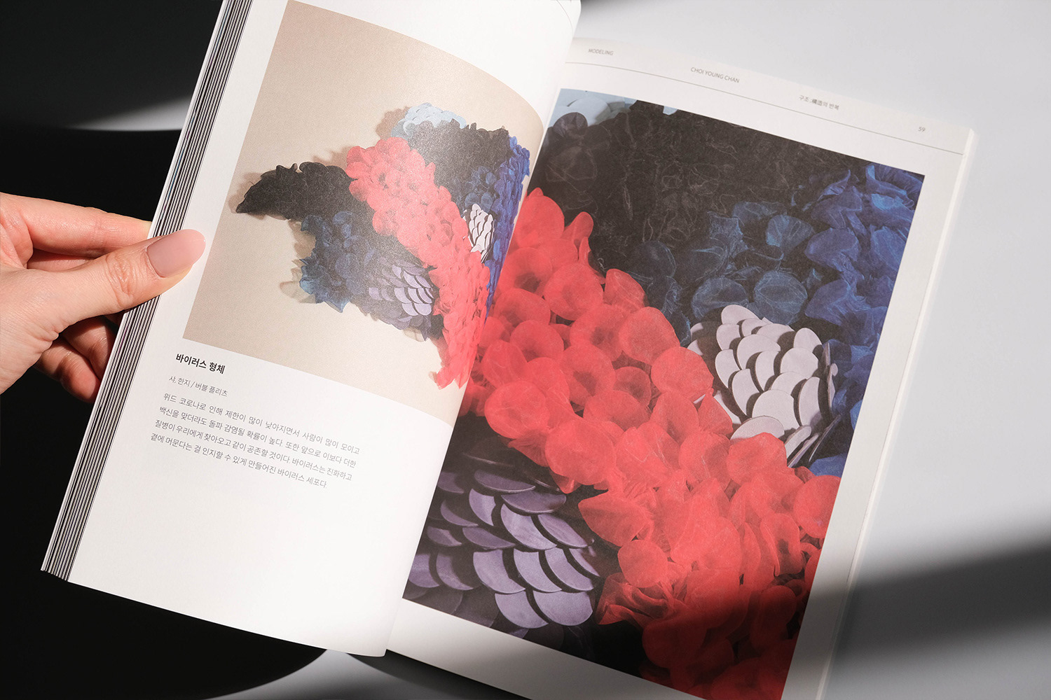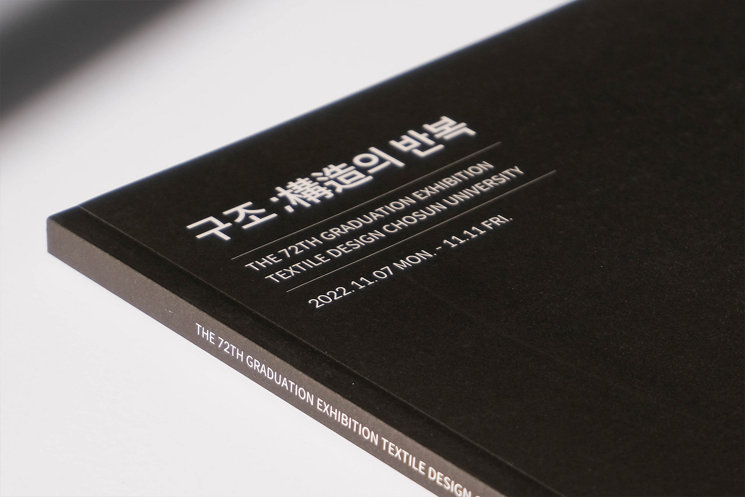 조선대학교 미술대학 라이프스타일디자인학부 섬유디자인전공의 제72회 졸업전시회 <구조;構造의 반복>을 아카이빙한 도록 프로젝트입니다. 섬세한 라인 그래픽이 유기적으로 얽히며 확장되는 비주얼을 전면에 배치하여 예술적 깊이와 전문성을 강조하였습니다. 디자인줌은 단순한 도록 제작을 넘어, 예비 디자이너들의 첫 시작을 기록하는 소중한 아카이브로서의 가치를 디자인적 완성도로 뒷받침하였습니다.