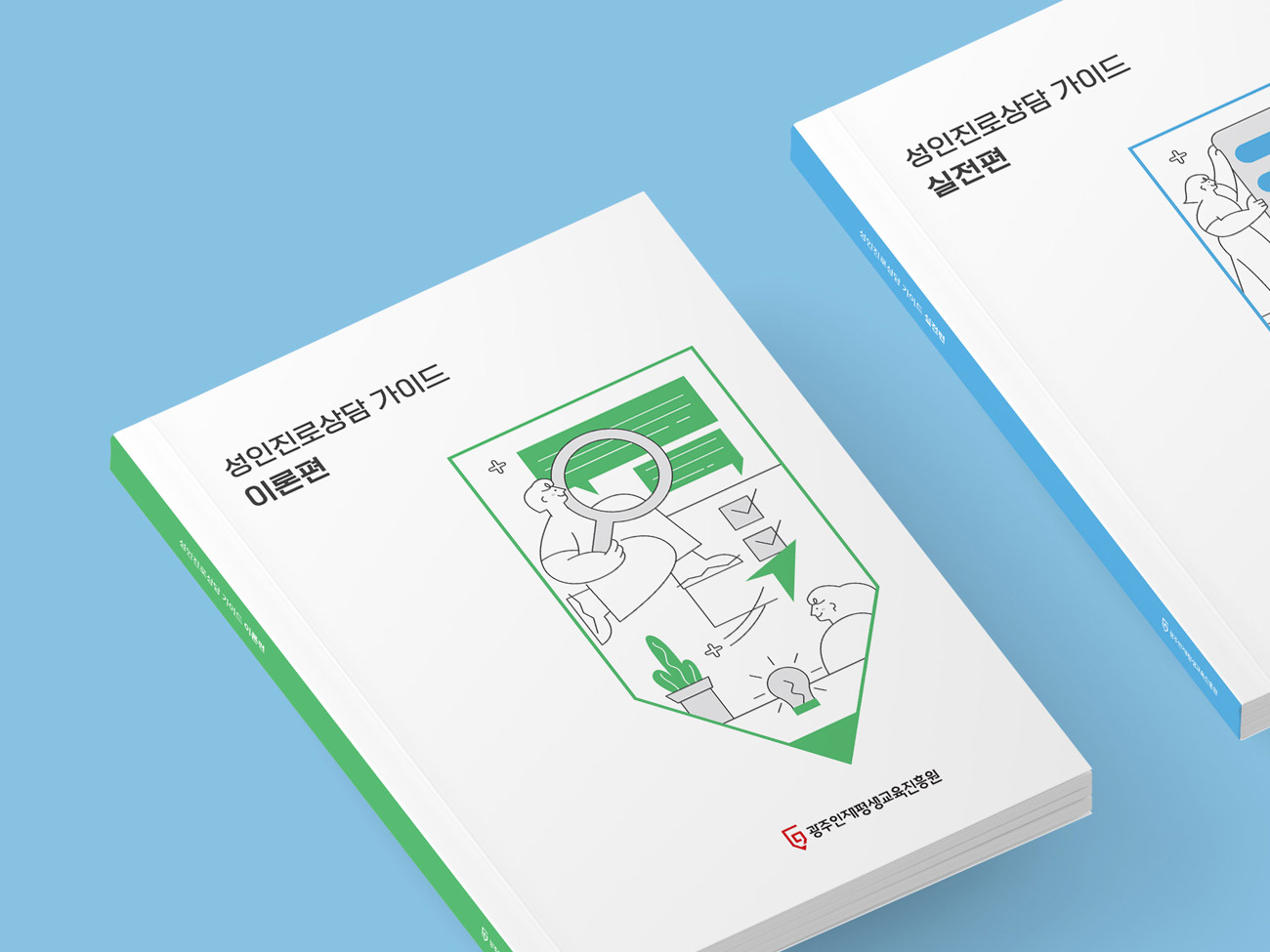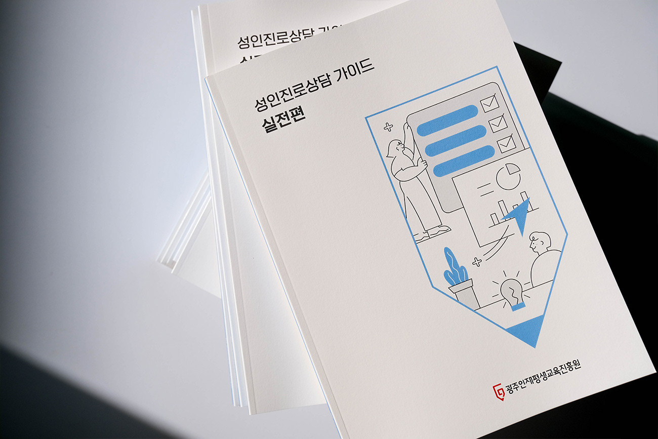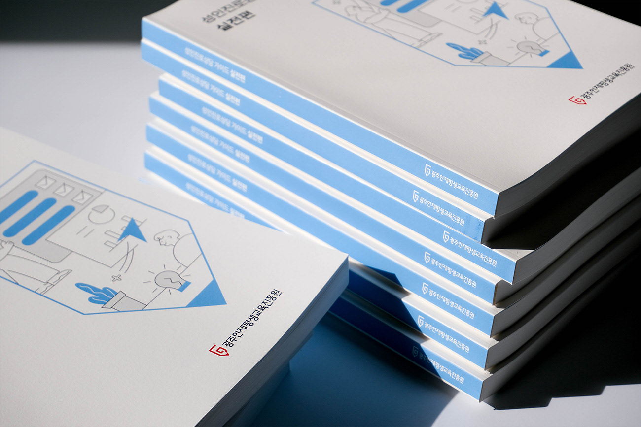 광주인재평생교육진흥원의 핵심 교육 자산을 체계화한 가이드북 시리즈로, 공공기관의 신뢰도와 사용자 편의성을 극대화한 편집 디자인 프로젝트입니다. 디자인줌은 이론과 실전의 명확한 컬러 시스템을 구축하고 직관적인 선형 일러스트를 활용하여, 방대한 정보를 시각적으로 구조화하고 가독성을 높이는 데 집중했습니다. 일관된 디자인과 전략적인 포인트 컬러 사용을 통해 정보 습득의 효율을 높이고, 기관의 전문적인 브랜드 이미지를 강화했습니다.